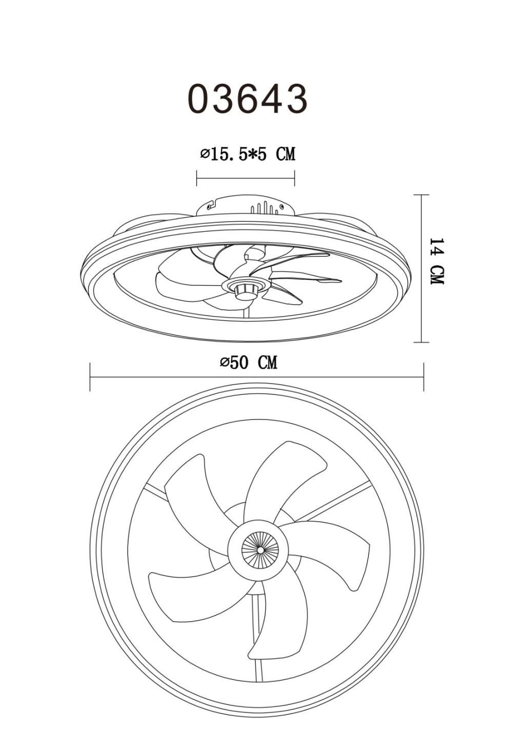 Mennyezeti ventilátor fém fekete matt, akril fehér, műanyag füstszínű, dimmelhető, több fokozat fali kapcsolóval, memória funkció, időzítő, távirányító, 30m²-re, ø: 500mm, M: 140mm, LED 40W 230V, 460-5000lm forrás, 188-2080lm kimenet, CCT 3000-6500K
