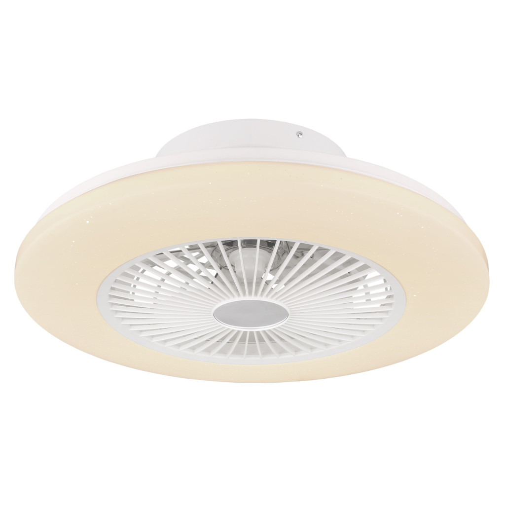Mennyezeti ventilátor Fém fehér, műanyag fehér, szabályozható, színhőm.vált., éjszakai funk. időzítő, távirányító, 18W, 25m²-re, hűtés, fűtés, ø:500mm, H:175mm, incl. LED 30W 230V, 180-1800lmLm, CCT 3000-6500K,Sebesség fokozatok: lépés 600-1000 RPM