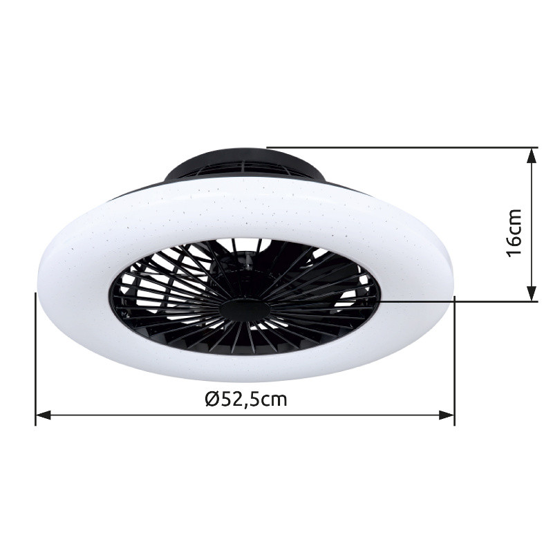 Mennyezeti ventilátor Fém fekete, műanyag fekete-fehér, szabályozható, színhőm.vált., éjszakai funk.időzítő, távirányító, 18W, 25m²-re, hűtés, fűtés, ø:500mm, H:175mm, LED 30W 230V, 180-1800lm, CCT 3000-6500K,Sebesség fokozatok: lépés 600-1000 RPM