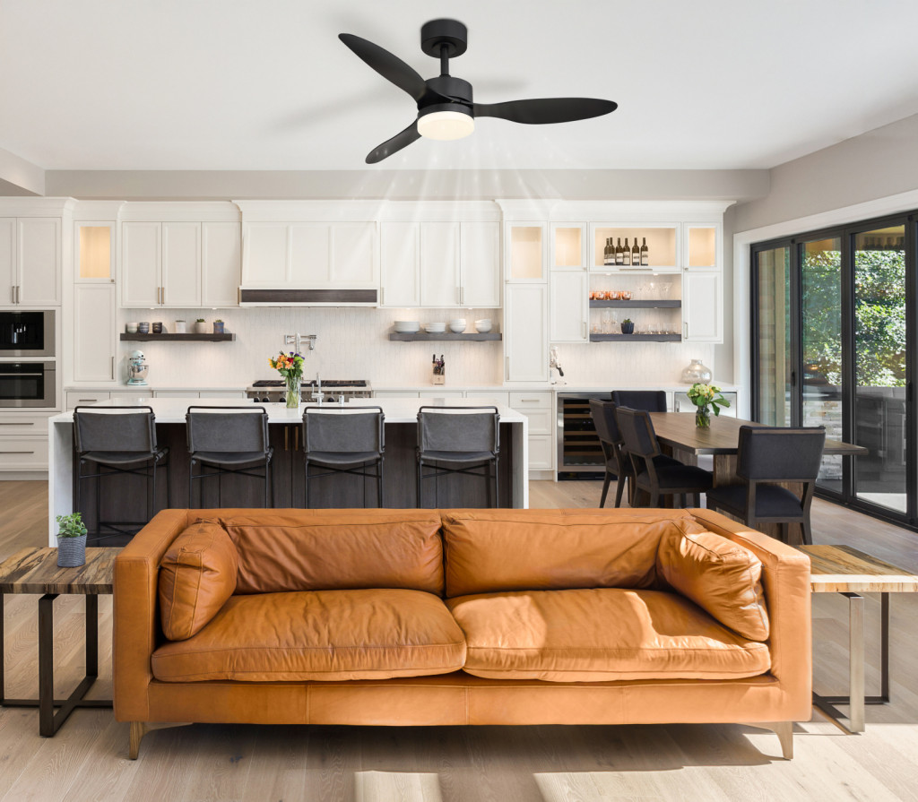 Mennyezeti ventilátor fém fekete, műanyag fehér/fekete, dimmelhető, több fokozat fali kapcsolóval,színrögzítés, memória, éjszakai fény,időzítő, távirányító, 15m²-re, ø:1060mm, M:405mm, LED20W 230V, 260-1800lm forrás, 170-800lm kimenet, CCT 2700-6500K
